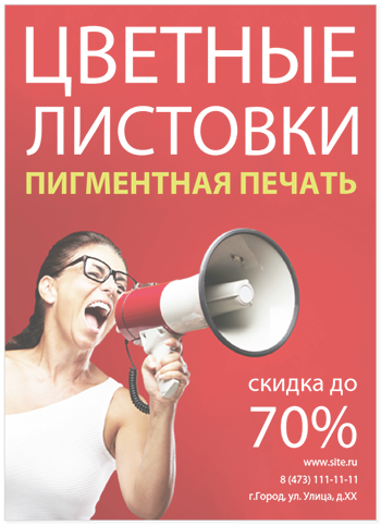 Бумага: Все листовки печатаются на мелованной бумаге плотностью 130 грамм/кв.м. Способ печати: цифровая лазерная ксерографическая печать. Печатная машина: Xerox Versant-3100 (самая быстрая цифровая печатная машина в Воронеже и области на август 2019 года). Резка: немецкая высокоточная программируемая гильотина для бумаги Wohlenberg Cut-Tec 76 с гидравлическим прижимом стопы. Сроки выполнения заказов: Стандартные сроки
